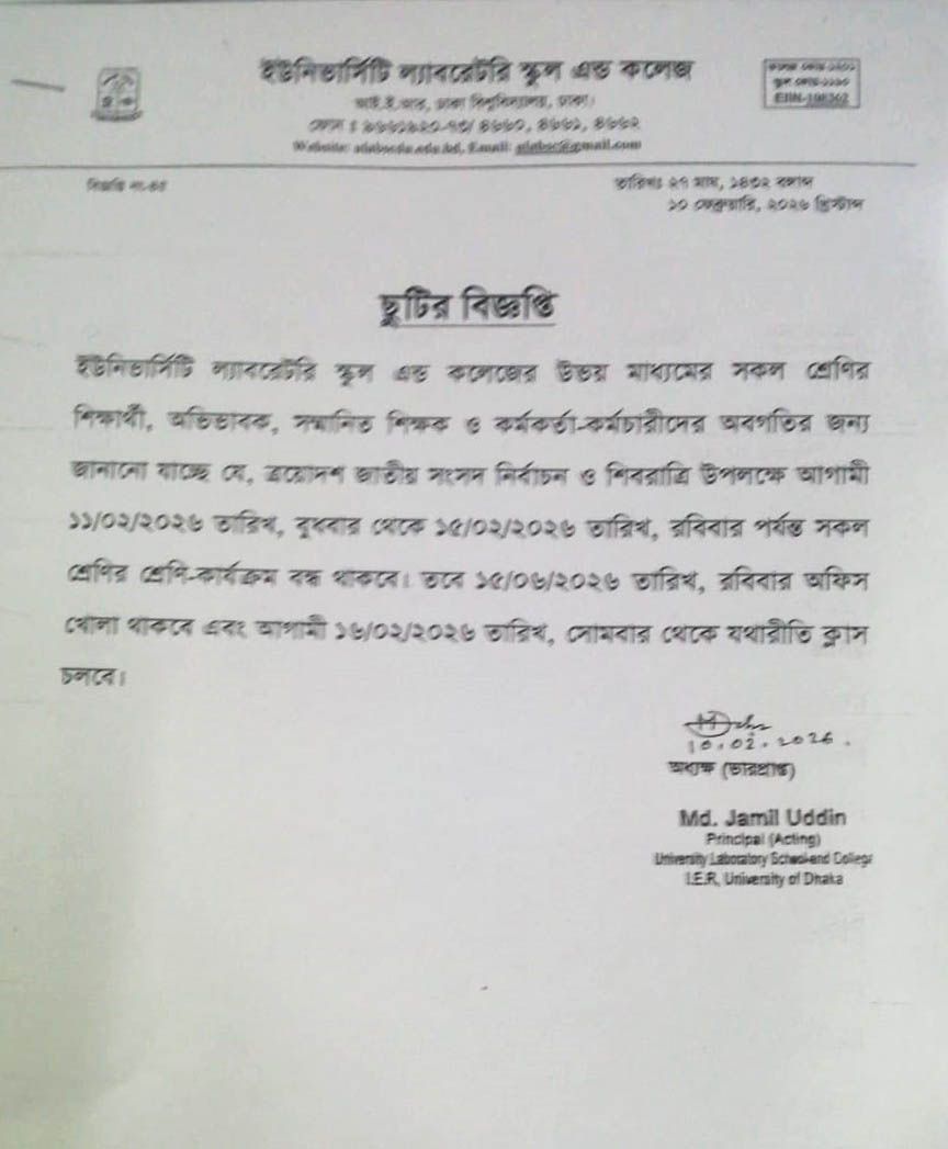 ULSC - ত্রয়োদশ জাতীয় সংসদ নির্বাচন ও শিবরাত্রী উপলক্ষে ছুটির বিজ্ঞপ্তি...................